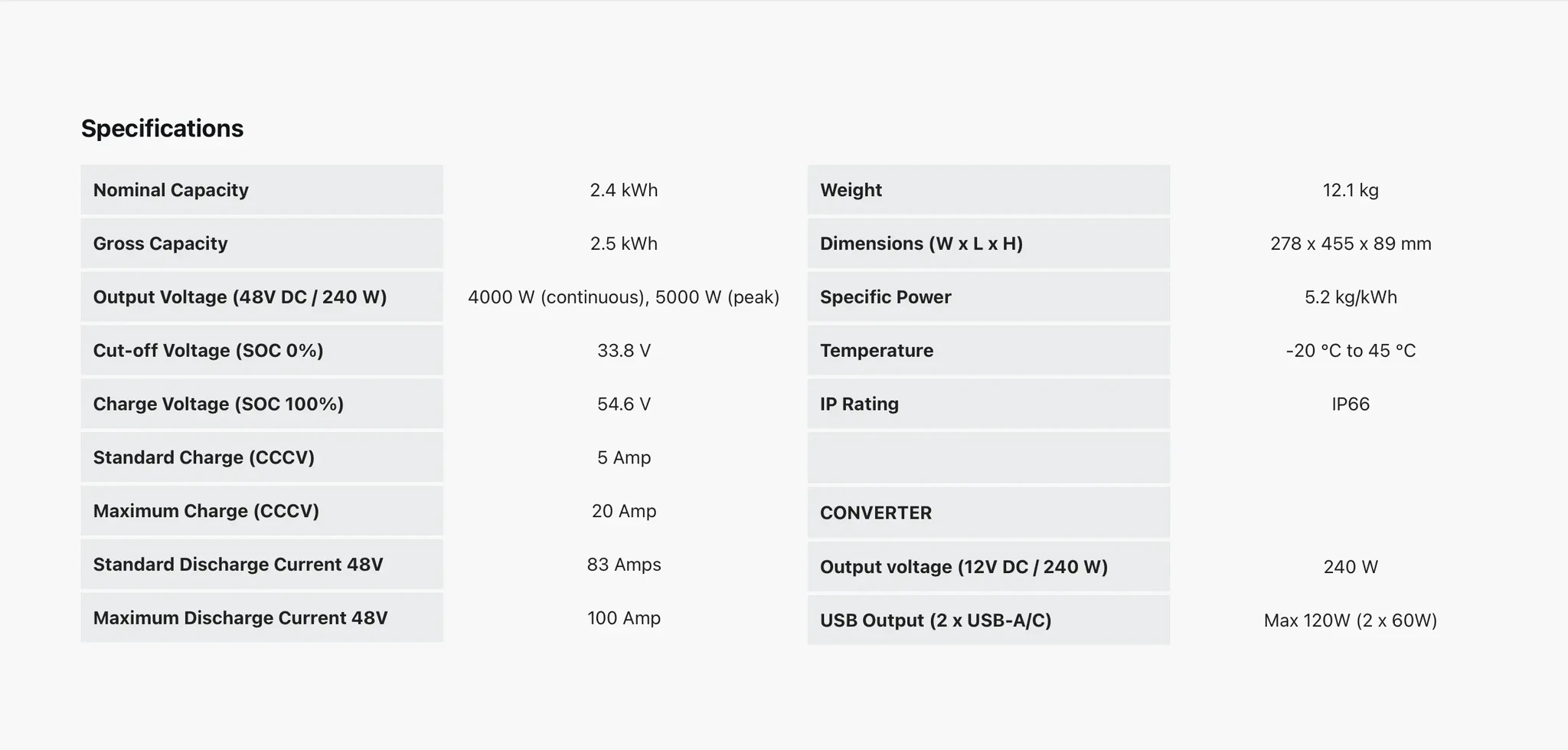 - Nimimahtuvus: 2,4 kWh